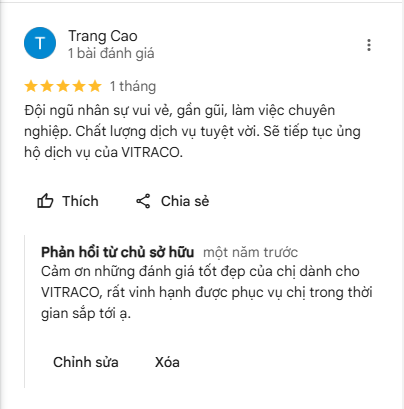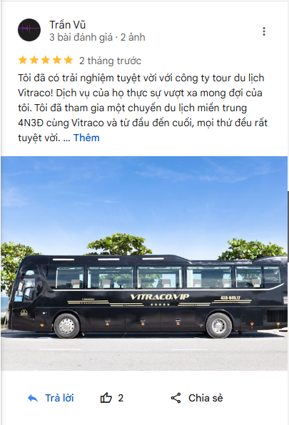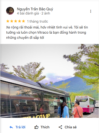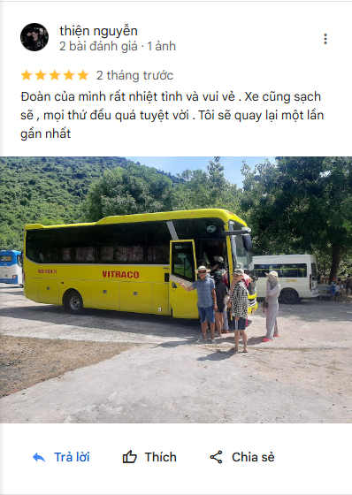Với hơn 20 năm kinh nghiệm, VITRACO tự hào là đối tác vận tải tin cậy của nhiều công ty du lịch, doanh nghiệp, cơ quan nhà nước và khách hàng cá nhân. Chúng tôi luôn nhận được những phản hồi tích cực nhờ vào chất lượng xe tốt, dịch vụ tận tâm và phong cách làm việc chuyên nghiệp.