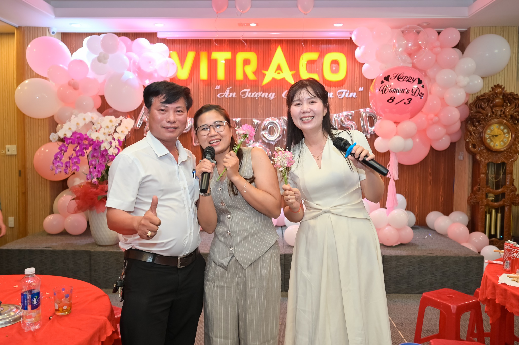 Nhân dịp này, tối ngày 07/3, Ban lãnh đạo, Công đoàn cùng các nam cán bộ nhân viên VITRACO đã tổ chức một buổi gặp mặt thân mật tại hội trường tòa nhà nhằm gửi lời chúc mừng đến chị em phụ nữ trong công ty. Những bó hoa tươi thắm, những phần quà ý nghĩa cùng các tiết mục giao lưu đã tạo nên một không khí ấm cúng và đầy ý nghĩa.